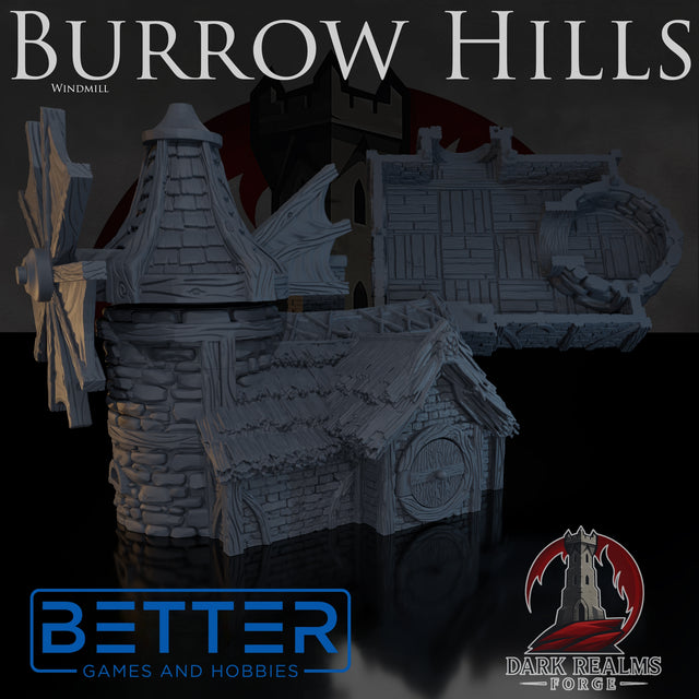 Windmill - Burrow Hills, Halfling village 3d printed Tabletop Wargames Terrain Scenery
